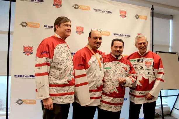 In September of 2015 during a breakfast between Clive Thurston – TCA President, Jason Ball – Ball Construction OGCA Chair, David Frame OGCA EVP and Craig Lesurf, President of Gillam and OGCA Safety Committee Chair in New Orleans the inception of the League of Champions was born out of support of safety and safety culture in the ICI Construction industry, a non-profit aimed at improving the workplace for vulnerable workers, and the idea of growing the safety message in the construction industry in Ontario. Early in 2016 the League was launched by the Ontario General Contractors Association (OGCA) in support of safety and safety culture with the LOC’s mission of inspiring and influencing leaders to commit, collaborate and take action to improve safety culture through awareness, education, promotion and recognition leading to safer construction workplaces in Ontario. The jersey idea was inspired by Rob Ellis of MySafeWork who wore a team Canada jersey and Craig Lesurf looking for a rally cry to draw support and inspiration set out to design a jersey with a patriotic element and after several handmade prototypes the now familiar LOC white jersey with red leaf emerged. Joining the League of Champions is a commitment on the part of companies to safety and safety culture and when workers sign the LOC Jersey as a pledge that they are going to work safely every day and they will make sure that those that work beside them also work safe so that everyone goes home safe and sound at the end of each and every day! When you sign your family name it is typically on a contract, that is the commitment we look to obtain. This is the start of a commitment to safety culture on behalf of companies and workers.